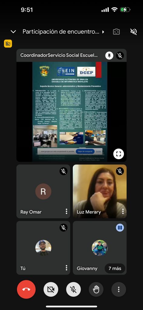 “Logramos cumplir con los objetivos planteados en el Centro de Cómputo y en las oficinas de la preparatoria. Mi servicio fue ayudar a mucha población de mi rancho, más de 250 personas, algunos ni siquiera sabían usar una impresora; les dimos capacitación a los docentes e instalamos material como software a los dispositivos y módems para la señal de internet. Fue muy grata mi experiencia, siento que le deje algo a mi comunidad”, concluyó en su presentación.